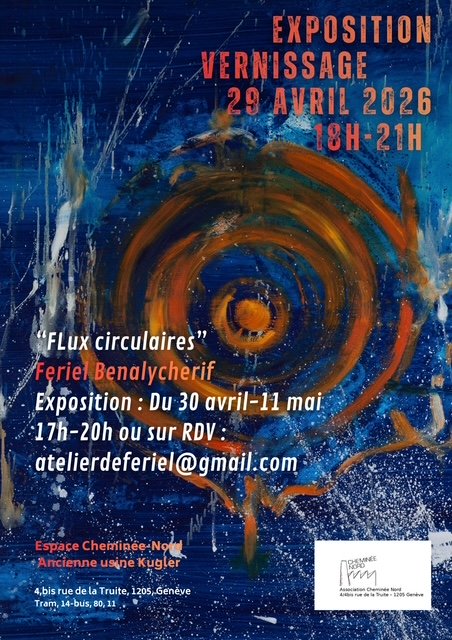 Exposition de Peinture Mercredi 29 avril-Vernissage à partir de 18 h à 21hExpo : 30 avril au 11 mai de 17 à 20 h Espace cheminée Nord 4 rue de la truite(cours-escalier métal)1205, Genève, Tam 14-Bus-80, 11 Au cœur du corps comme au cœur du cosmos, il existe un centre — un point d’ancrage, une...