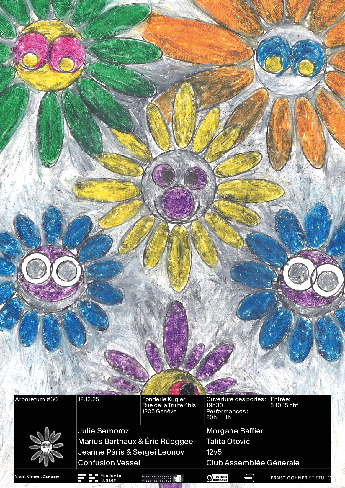 12 décembre 202520h–01h Huit performances pour une 30e édition inventive — une traversée nocturne entre voix, gestes, machines et visions. Entrée payante : CHF 5.– / 10.– / 15.– Arboretum célèbre sa 30e édition avec une soirée spéciale à la Fonderie Kugler, un cadre idéal pour accueillir son esprit d’exploration artistique.Depuis huit ans...